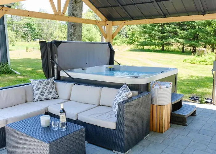 Riverfront Poconos Cabin With Hot Tub On 4 Acres Near Delaware River Lackawaxen is located approximately 20 minutes' walk from the Zane Grey Museum and provides snow skiing for active guests. Offering a Jacuzzi, this Lackawaxen villa is 2.5 km from the Roebling Aqueduct Suspension Bridge.